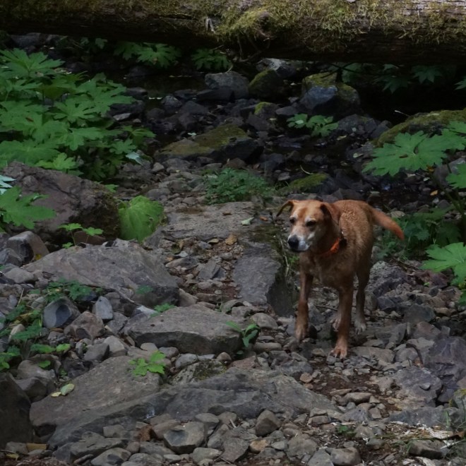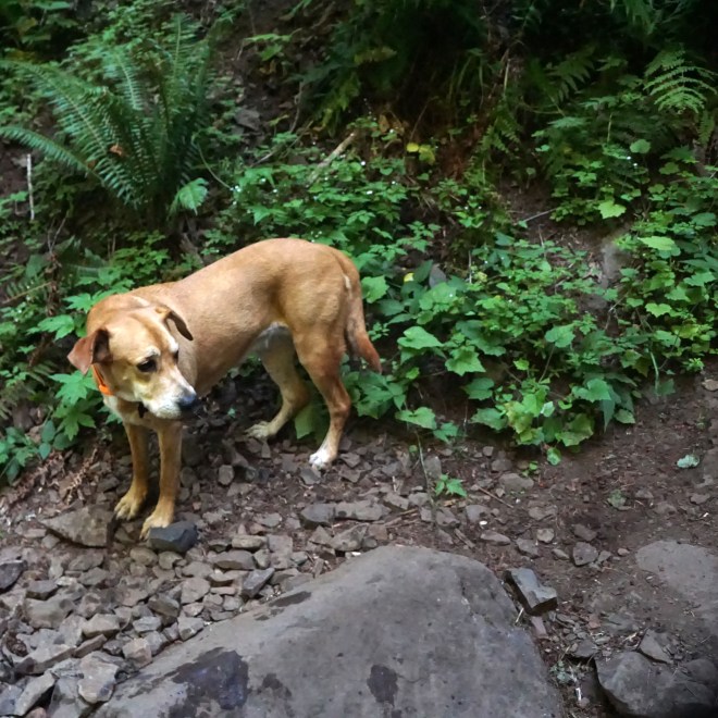 Mom, Dad and I hiked the Horsetail Falls Loop trail and saw Horsetail Falls, Ponytail falls and Multnomah Falls. Lots of people on the trail so I was on leash for a lot of the hike but got to run and swim some!